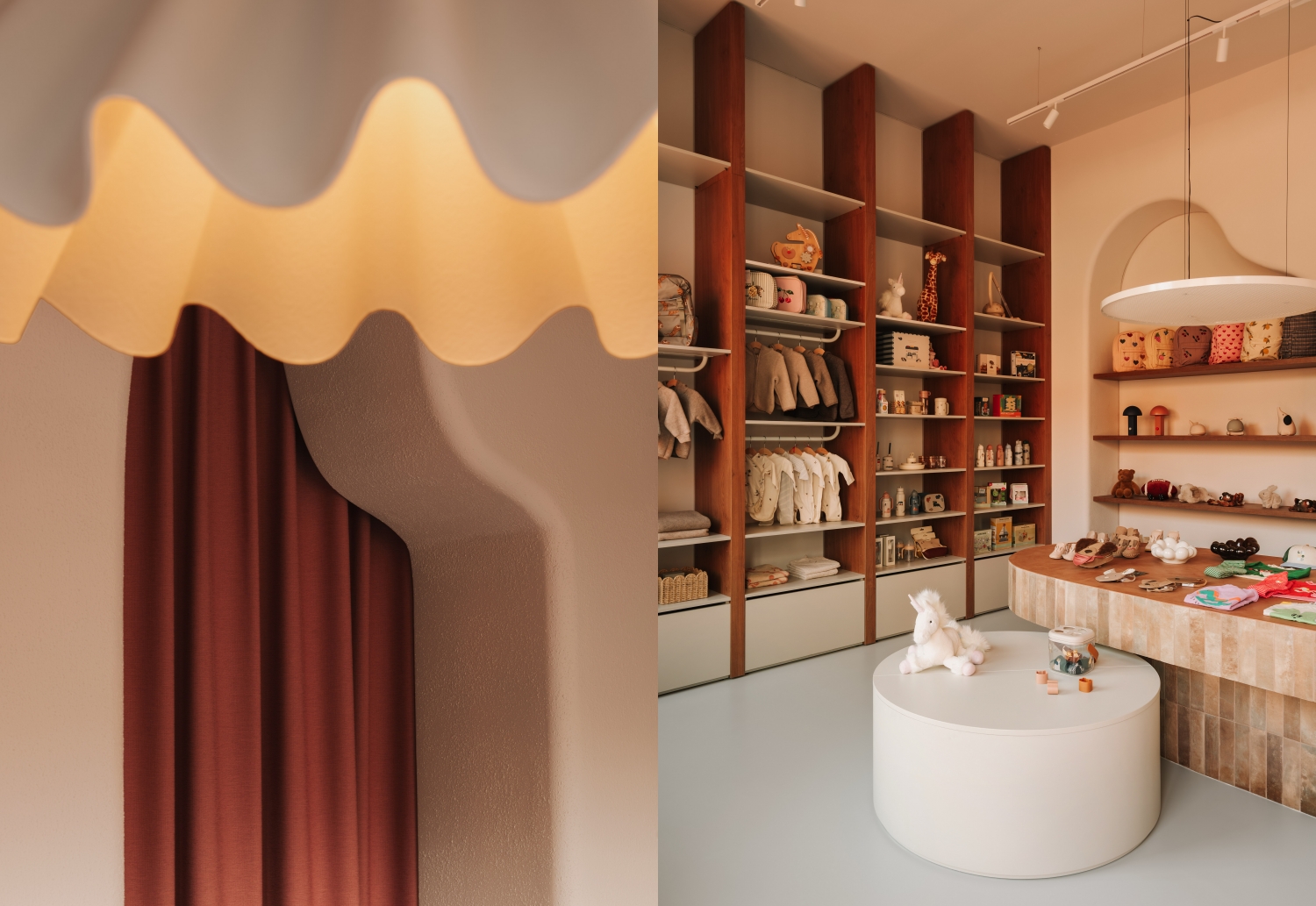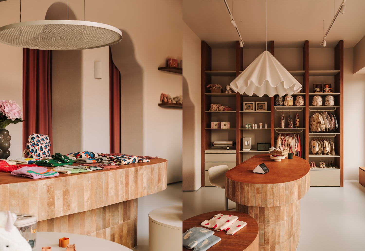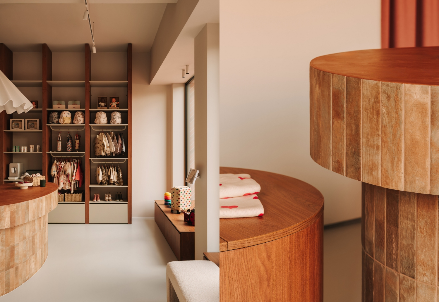 Inspirowaliśmy się miękkimi formami, delikatnymi fakturami i kolorystyką ciepłych odcieni terakoty, złamanej bieli i orzecha. Cegła licowa w kolorze wpadającym w róż nawiązuje do elewacji budynku, a strukturalne tynki, mikrocement i naturalne tkaniny budują przyjemny, domowy, ale wyrafinowany klimat.