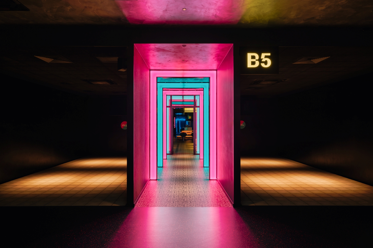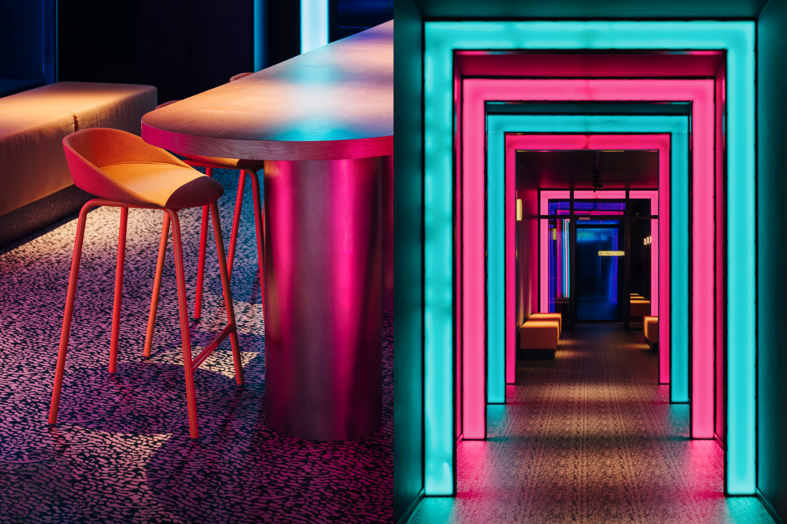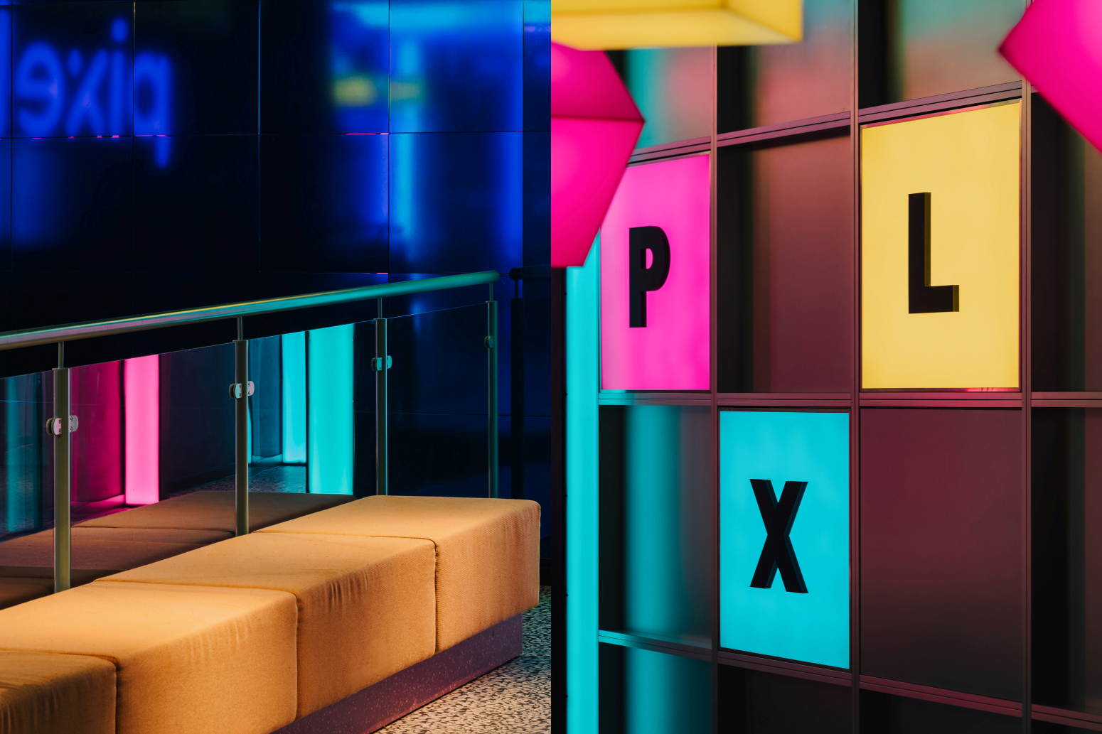 Przestrzeń została zaprojektowana tak, aby strefy harmonijnie się przenikały, eliminując bariery wizualne i jednocześnie zapewniając każdej strefie do gier dedykowane miejsce do odpoczynku. W efekcie powstała transparentna i wizualnie charakterystyczna przestrzeń, która nie tylko sprzyja swobodnej interakcji między wnętrzem a otoczeniem, ale również podkreśla unikalny charakter miejsca.